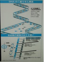 DNAの結びつきを破壊する放射線のエネルギーDNAは「アデニン(A)」「チミン(T)」「グアニン(G)」「シトシン(C)」という四つの「塩基」から成り立つ鎖が2本絡み合ったものでその中に遺伝子情報が含まれています。