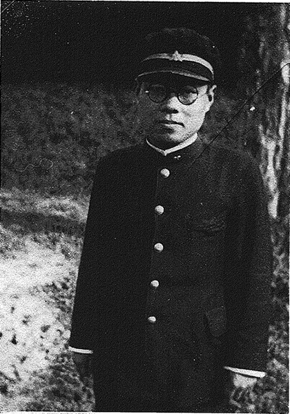 昭和二十年四月九日に軍医少尉の任官を命じられ江波分院で桜花を背景にとった写真が残っていました。服は三年式軍衣袴で襟章の下部に衛生部を示す深緑色徽章と袖には尉官を示す1本の線章と少尉を示す1つの星章が認められます(*11)。