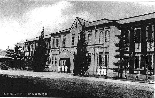 広島陸軍病院の歴史は明治初頭、 国軍創設にあたり「広島鎮台病院」が広島城内に設置されました。のちに城外西方の太田川畔基町に移されてから「広島衛戌(えいじゅ)病院」と改名され、 大正時代を経て、 昭和十二年「広島陸軍病院」と改称されました。同年七月に慮溝橋事件の発端で支那事変が勃発した為、基町の旧陸軍幼年学校施設に開設された基町分病室そして西練兵場及び江波・三滝(打越町)の地に江波分病室、三滝分病室の病棟が増設されました。当初これらの病棟を「分病室」と呼んでいましたが、のちに「分院」と呼称されました。