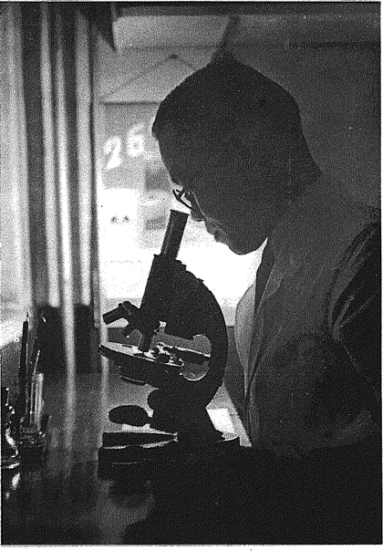 当時の内科医は現在の検査技師が行っている検査を殆ど全て行っていました。京都第一赤十字病院に於いて顕微鏡で検査を行う父