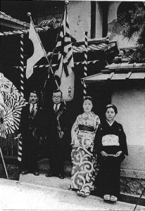 出征を目睫の間に控えて京都市伏見区の自宅前で記念写真