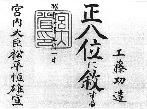 宮内大臣から「正八位に紋する」の指令を受けて陸軍少尉に任官されました。