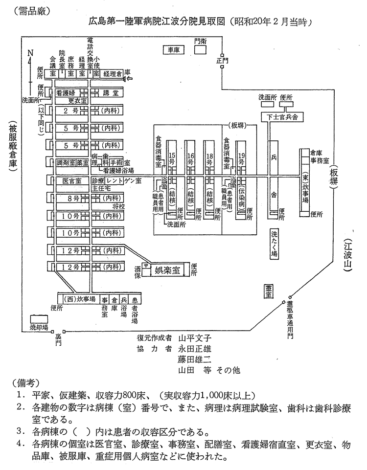 広島第一陸軍病院江波分院の見取り図(昭和二十年二月当時)